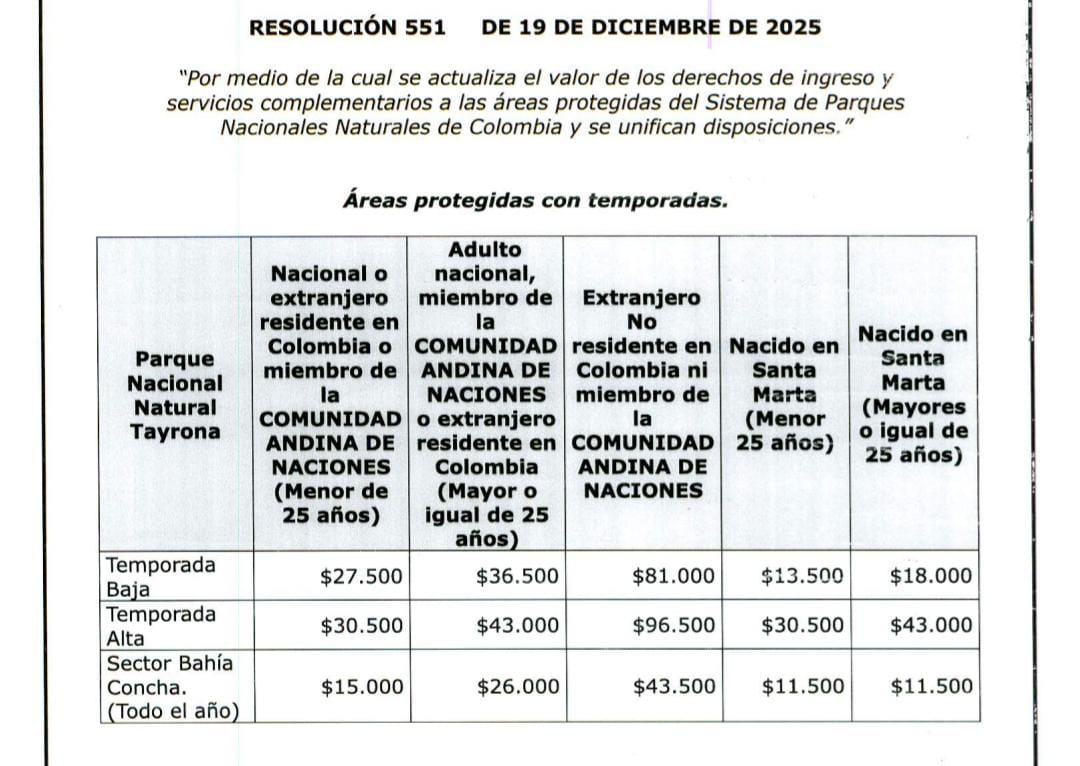 Precios del Parque Tayrona (2026)